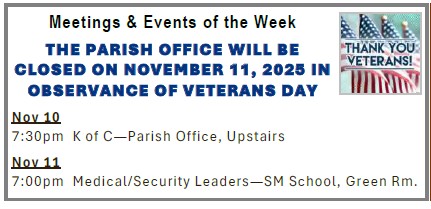 Our Lady of Guadalupe – Schedule of Events 2025 Saturday, November 15 St. Mary Church 5:30 pm Mass, Torch Arrives Sunday, November 16 St. Mary Church 11:30 am Mass, Sacrament… Read more