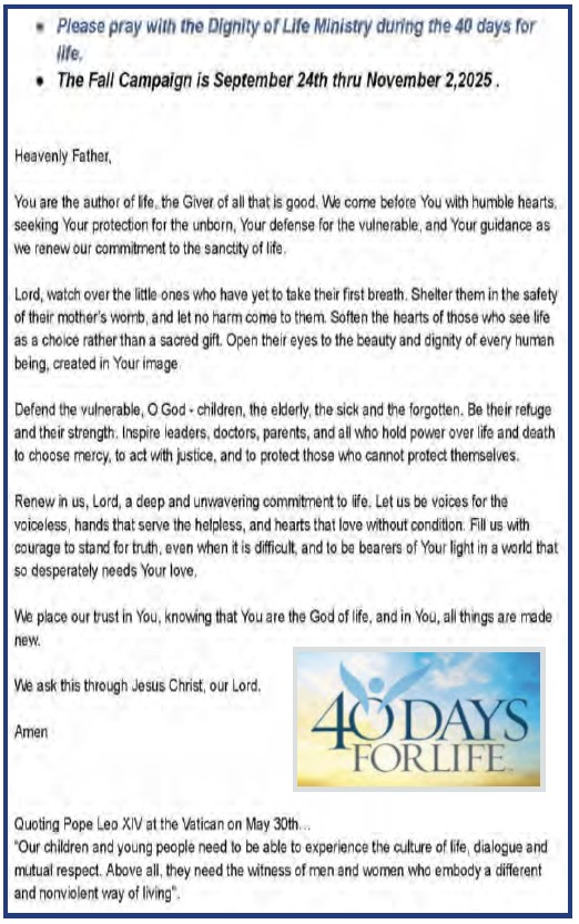 The Dignity of Life Ministry is a part of a powerful movement that uplifts, supports and defends the inherent worth of every individual from conception to natural death.We stand firm… Read more